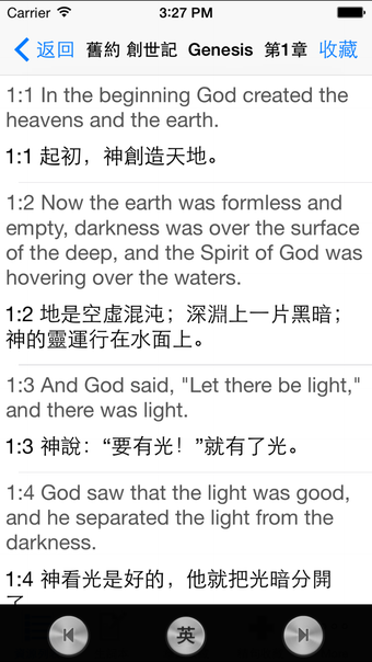 A principal característica deste aplicativo é a funcionalidade de aprendizado bilíngue, onde cada versículo é apresentado com a tradução correspondente. Os usuários podem pressionar palavras em inglês para ver suas definições e também têm a opção de salvar palavras para estudo posterior. Além disso, o aplicativo permite a marcação de capítulos e versículos, facilitando revisões e leituras futuras, enquanto o progresso de leitura é automaticamente registrado.